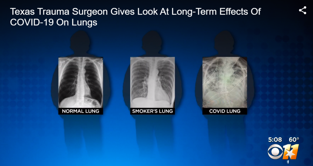 Brittany Bankhead-Kendall este profesor asistent de chirurgie la Texas Tech University și spune că din martie și până acum, de când tratează pacienți cu COVI-19, a observat că la toți pacienții cu simptome clare de COVID plămânii sunt foarte grav afectați. De asemenea, în 70-80% dintre cazuri, radiografiile relevă stări severe și la pacienții asimptomatici.