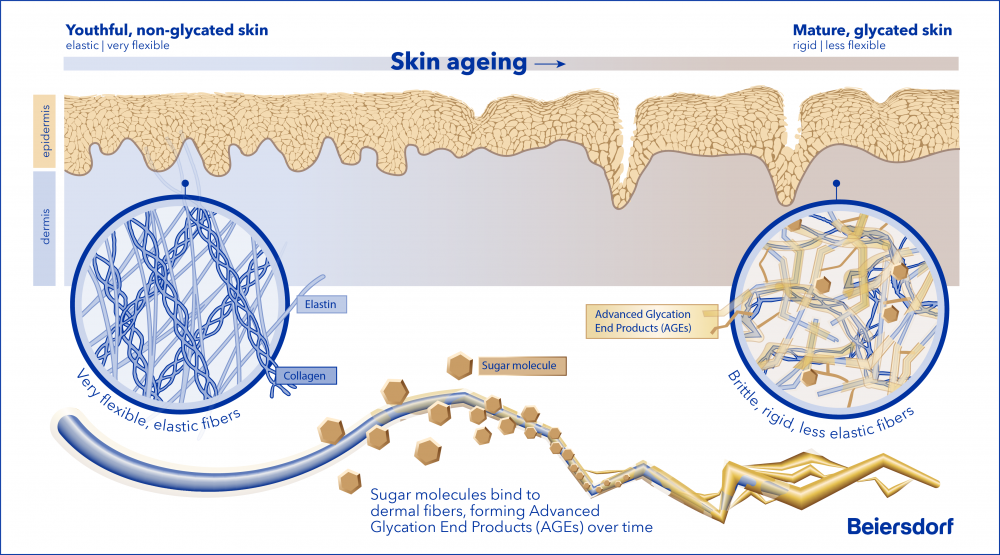 În România, fenomenul glicației este încă puțin cunoscut, deși joacă un rol esențial în îmbătrânirea pielii, explică Dr. Ute Breitenbach, specialist în cercetare și dezvoltare în domeniul îngrijirii pielii la Beiersdorf. ”Nu doar soarele și genetica sunt de vină pentru semnele timpurii ale îmbătrânirii. Rolul zahărului este subestimat în accelerarea îmbătrânirii pielii”, explică ea.